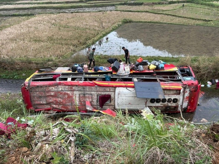 Xe khách chở 22 người bị lật ở Sơn La